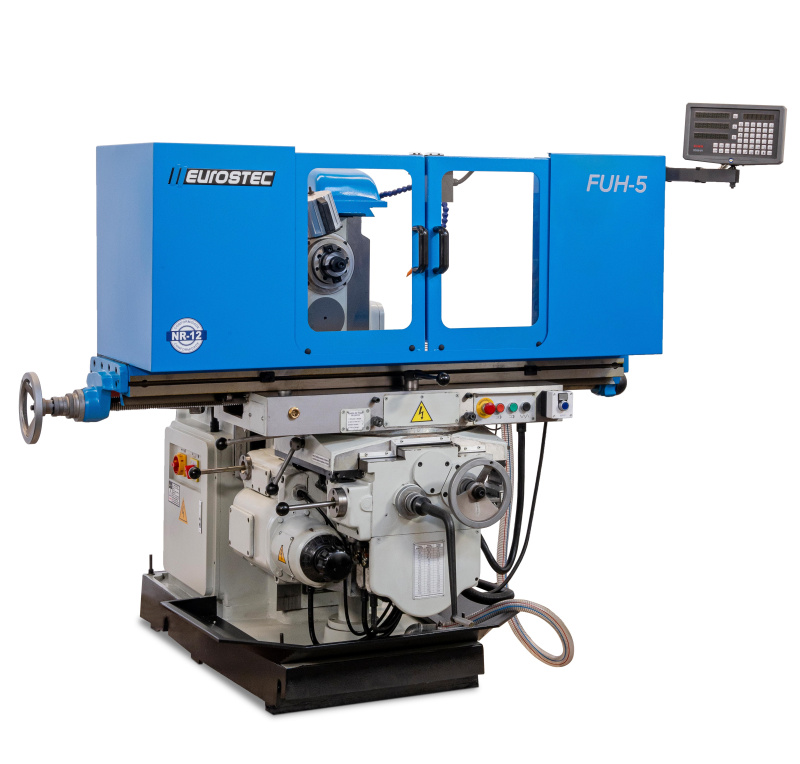 A Fresadora Universal Eurostec foi projetada para oferecer alto desempenho em desbastes, esquadrejamentos e cortes de dentes em eixos e engrenagens, garantindo versatilidade e produtividade em diferentes aplicações industriais.