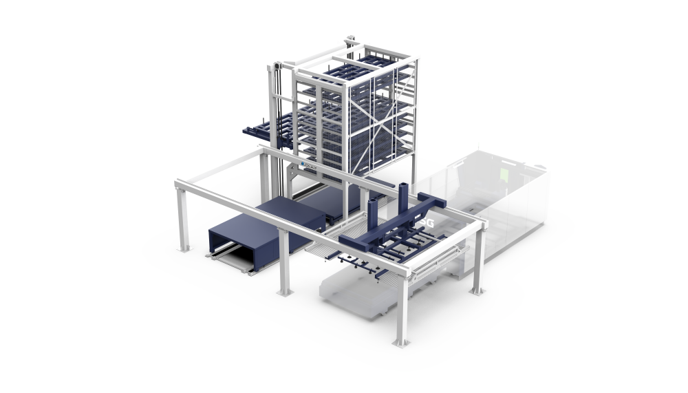 O Smart Load & Rack Eurostec é uma solução de automação para alimentação e descarga de chapas com possibilidade de integração com estoque vertical, desenvolvida para operações que buscam máxima eficiência no corte a laser com o menor espaço possível.